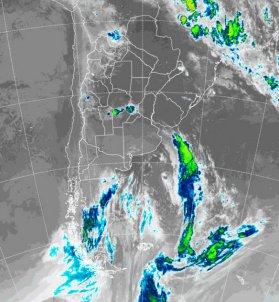 En la imagen de satélite, se destaca el tránsito de perturbaciones por el sur de la Patagonia. El frente de ayer, más intenso, logró proyectarse en forma dispar sobre la región pampeana, más que nada sobre el sur. Las perturbaciones que vienen desde el oeste, volverán a provocar inestabilidad sobre el sur de la región pampeana, sin afectación para la zona núcleo y las provincias del centro en general.
