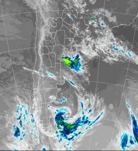 En la foto de satélite, se aprecia la zona más activa, justo sobre el este de la zona núcleo. La baja presión del sistema frontal está anclada muy al sur en el mar argentino, en el entorno de Malvinas. El brazo frontal comienza a desplegarse sobre el sudoeste de la región pampeana, lo cual se refleja en un aumento de las nubes bajas, las cuales no tienen demasiado potencial pluvial. El área de nubosidad desarrollada al este de la zona núcleo si puede dejar lluvias, incluso algunos chaparrones bastante copiosos. Hacia el centro y norte de la región pampeana también aparecen nubes bajas, con cielos menos cubiertos sobre el norte del país, temporariamente.
