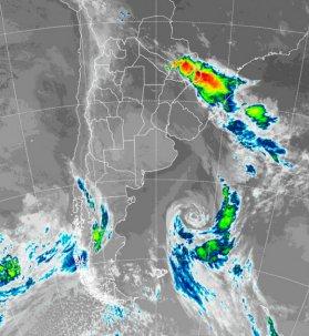 En la foto de satélite, se destacan importantes tormentas sobre el norte de la provincia de Corrientes, las cuales forman parte de la inestabilidad que genera un frente estacionario en la zona. Frente a las costas patagónicas, se observa el ciclón de un frente que ayer transito las provincias del sur, el cual fortaleció parcialmente el aire frío sobre el sur de la región pampeana. En tanto, otra perturbación avanza desde el Pacífico sur, generando aumento de la nubosidad sobre las provincias de la Patagonia.