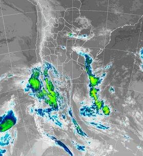 En la foto de satélite se anticipa una situación bastante inestable para los próximos días. En el plano de la imagen se aprecia la sucesión de perturbaciones que afectará gran parte del país durante los próximos días. En primer lugar el frente que transita desde el norte de la región pampeana hacia el norte del país. Una segunda perturbación ya está afectando gran parte de la Patagonia, la cual puede dejar importantes nevadas en la cordillera, para avanzar luego sobre la región pampeana con nuevas precipitaciones. Hacia el borde izquierdo de la imagen, sobre el Pacífico sur, una tercera onda ya muestra la continuidad del mal tiempo que se perfila para los próximos días.