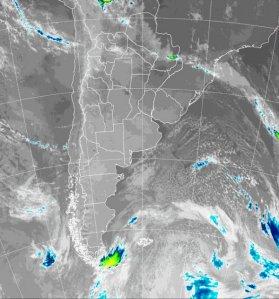 En la foto de satélite, se observa un vasto despliegue de cielos despejados. Las excepciones son de escala reducida. La provincia de TdF, presenta nubosidad que puede dejar lluvias modestas, incluso algunas nevadas. El extremo norte de Misiones también presenta algún tránsito de nubosidad y también, dentro de los restos de aire tropical, pueden concretarse algunas precipitaciones menores. Sobre el mar Argentino se destacan coberturas nubosa particionadas, llamadas celulares abiertos, las mismas son indicadores de circulación de aire frío. Favorablemente durante los próximos días los vientos del sur sudoeste, tenderán a perder eficiencia, sin embargo el sur de la región pampeana queda expuesto a este aire más frío.