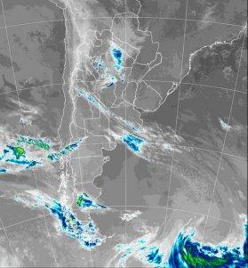 En la foto de satélite, se aprecian distintas perturbaciones, todas ellas independientes entre sí, promoviendo distinto grado de nubosidad. La zona más inestable se presentará en la parte central del norte del país y posiblemente en el sur de la Patagonia. En estas dos regiones pueden concretarse algunas lluvias.