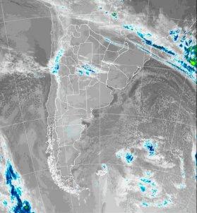 En la foto de satélite, se advierten algunas coberturas sobre el centro norte de CB y el centro de SF. Las mismas parecen circular hacia el este, aunque no tienen potencial como para dejar precipitaciones. El aire instalado sobre los océanos continua siendo muy frío, lo cual sostendrá las actuales condiciones ambientales debido a la persistencia de los vientos del sector sur.