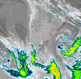 En el recorte de la Imagen Satelital puede observarse el vasto despliegue de cielos despejados que permitió el efectivo enfriamiento en todo el centro y norte del país. El tono de grises acusa las bajas temperaturas en superficie. Internado sobre el Atlántico puede observarse la baja presión que impulso el ingreso de aire frío sobre la mitad norte del país. Por último, sobre la región patagónica, continúan el paso de diferentes perturbaciones de dirección oeste este sin lograr alcanzar la zona pampeana.