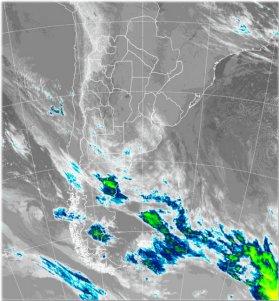 En la foto de satélite, se aprecian algunas nubes que avanzan sobre la provincia de BA. Las mismas no lograrán un nivel de desarrollo que las pueda potenciar como para que se observen precipitaciones, tampoco provocarán cielos cubiertos en forma persistentes. La perturbación que las provoca transita por el norte de la Patagonia, posiblemente dejando algunas lluvias menores en el este de Chubut.