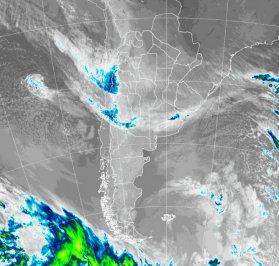 En el recorte de la Imagen Satelital puede observarse el vasto despliegue de nubosidad en el centro y norte del país concentrando núcleos de mayor desarrollo sobre la cordillera andina y, en menor medida, sobre el norte de Neuquén y oeste de La Pampa. Cabe mencionar que la nubosidad carece de desarrollo y dinámica sobre las principales zonas productivas por lo cual, son prácticamente nulas las chances de precipitaciones.