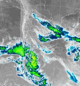 En la foto de satélite, se puede apreciar la secuencia de perturbaciones que está afectando el país en este último martes del mes. Sobre el noreste de BA se intentará cerrar una zona de baja presión, la cual no será suficientemente intensa como para promover lluvias de importancia. En tanto, el brazo frontal, ya afecta el centro de la Mesopotamia y parte del NEA. Como podemos ver, los desarrollos nubosos son pobres, no están asociados a lluvias de importancia. Por otra parte, una nueva perturbación frontal ingresa por el norte de la Mesopotamia con dirección al este. La misma provocará nevadas en el oeste de la Patagonia e inestabilizará sectores de LP, oeste y sur de BA.