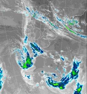 En la foto de satélite, se sostienen las coberturas nubosas sobre la franja norte del país, mientras que a medida que nos desplazamos hacia el sur e ingresamos en la región pampeana, prevalecen las nubes bajas, en muchos casos alcanzando la superficie en forma de nieblas y neblinas. En algunos sectores del norte bonaerense se están reportando lloviznas. Sobre el sudoeste de la región pampeana, avanza una zona frontal, la cual mantendrá el despliegue de nubosidad sobre gran parte de la región pampeana a medida que su trayectoria se complete durante los próximos días.