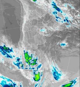 En la foto de satélite aún se notan algunas coberturas sobre la provincia de ER. Las mismas pueden estar dejando lloviznas o lluvias muy débiles. En el centro entrerriano ya venía lloviendo, incluso algunos chaparrones alcanzaron los veinte milímetros. El sur de la Patagonia se presenta muy inestable con el avance de un nuevo sistema frontal. El mismo tiene una trayectoria hacia el este, aunque marginalmente puede afectar con nubosidad el sur de la región pampeana.