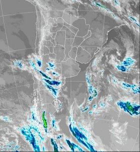 La foto de satélite, presenta un panorama donde dominan los cielos despejados. Se destaca el avance de una nueva perturbación desde el oeste, la cual se moverá hacia el este durante el resto del día y proyectará coberturas sobre gran parte del sur bonaerense. También sobre el extremo sur de la Patagonia se nota algo de actividad y pueden observarse algunas lluvias y nevadas menores sobre la cordillera santacruceña. La zona de alta presión domina el centro norte del país y por lo pronto se constituye en un fuerte factor de estabilidad.