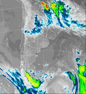 En la foto de satélite se destacan las coberturas que desde el NOA avanzan sobre el centro mediterráneo del país. Las mismas pueden estar dejando algunas lloviznas o chaparrones débiles, algunos más generosos sobre el norte de CB o SdE. Esta nubosidad a lo largo del día se proyectará hacia el este por el norte del país, tomando también el norte de la región pampeana, con muy escaso potencial pluvial. El gris más claro en el sudeste bonaerense delimita la zona donde han ocurrido heladas de variada intensidad, de hasta -3ºC, la zona se presenta con cielos totalmente despejados. Sobre el extremo sur de la Patagonia, un brazo frontal deja algunas tormentas de importancia, desde donde se reportan precipitaciones, incluso algunas nevadas.