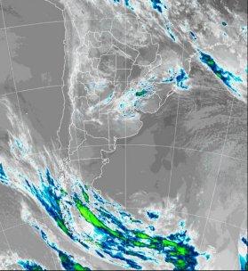 En la foto de satélite, se aprecia el tránsito de nubosidad por las provincias del centro, más que nada, sobre SF y la Mesopotamia, con una afectación más parcial sobre el oeste. No parece que estas coberturas puedan ganar desarrollo o dejar precipitaciones, en todo caso, pueden darse eventos muy dispersos y débiles. Con mayor seguridad, pueden volver a repetirse precipitaciones en el norte de Misiones. En tanto, las perturbaciones más intensas siguen transitando el sur de la Patagonia. Las lluvias que se observan sobre el norte del país, sobre todo en Misiones, son inestabilidades del aire tropical, eventos convectivos, sin cambios de masa de aire.