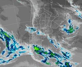 En el recorte de la Imagen Satelital puede observarse el predominio de cielos despejados o con escasa nubosidad en la mayor parte del centro norte del país respondiendo a la inhibición que promueve el sistema anticlónico. Una línea frontal de nubosidad se observa entre el suroeste de Buenos Aires, sur de La Pampa y norte de Neuquén con escaso desarrollo vertical sin que por el momento genere condiciones de inestabilidad.