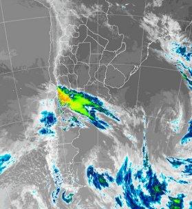 En la foto de satélite, se aprecia una perturbación que extiende su influencia desde el sur de MZ hasta el sudoeste bonaerense. Sobre el sur mendocino, la nubosidad se presenta desarrollada, con potencial como para generar tormentas. Las mismas se despliegan hacia el este avanzando sobre la provincia de LP, donde los desarrollos nubosos pierden el crecimiento vertical al ingresar en la zona más dominada por el anticiclón. Hacia el sur de la Patagonia, vuelven a dominar los cielos despejados.