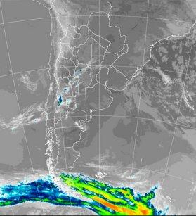 En la foto de satélite, los grises claros del sudeste bonaerense se asocian a las nieblas, las cuales se detectan como densas nubes bajas. Este contraste de grises también se ve en el norte del país, pero allí esto solo indica diferencia de temperatura superficial. Algunas nubes transitan desde la región cuyana hacia el oeste de CB, pero no son coberturas que puedan aspirar a un mayor desarrollo. Al igual que ayer y como ya lo hemos visto a lo largo de gran parte del bimestre previo, las principales perturbaciones circulan por el extremo sur de la Patagonia, algo que por cierto no se condice con una mejora perentoria y efectiva del patrón pluvial en la franja central del país.