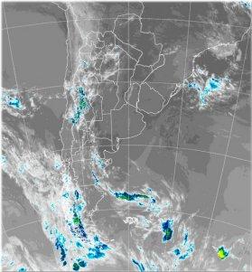 En el recorte de imagen satelital las coberturas se despliegan formando un arco, el cual no es casual. Las escasas nubes que se forman respetan la presencia del anticiclón sobre el este y se desplazan de norte a sur, sin que en ningún sector del país se detecten nubes con potencial pluvial, quizá algunas lluvias menores puedan concretarse sobre la provincia de TdF.