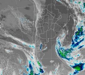 En el recorte de la imagen satelital puede observarse el predominio de un sistema de alta presión que impone cielos despejados prácticamente en todo el territorio nacional. Internado sobre el Atlántico se encuentra el sistema ciclónico o de baja presión en su proceso de oclusión, el cual fue responsable del desplazamiento del sistema frontal de mal tiempo durante el fin de semana que luego, en la jornada de ayer lunes, promovió intensos vientos en el este sureste pampeano. En las provincias de Chubut y Santa Cruz, se aprecia el pasaje de distintas perturbaciones de menor escala con escaso a nulo potencial pluvial.