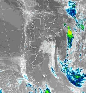 En la foto de satélite se destaca el despliegue de cielos despejados en gran parte del país, con excepción del sudeste bonaerense, donde se observa una abundante cobertura de nubes bajas, las cuales no presentan potencial pluvial. De acuerdo a lo previsto, la perturbación que ayer se presentaba sobre el sur de la Patagonia se ha desplazado hacia el sudeste, sin injerencia sobre el resto de la región.