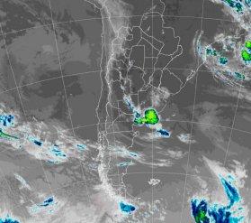 En el recorte de la imagen satelital puede observase el claro dominio de altas presiones que confieren cielos despejados en todo el territorio nacional aguardando por otra jornada de alta demanda hídrica. En el extremo sur pampeano y alcanzando el noreste de Río Negro, el tránsito de una perturbación genera aumento de nubosidad de escaso desarrollo vertical muy restringida en su desarrollo por las condiciones dinámica dominantes.