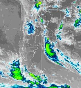En la foto de satélite se nota la nubosidad que sale desde el este de BA hacia el mar. El brazo frontal se proyecta hasta el norte argentino, con algunas tormentas activas sobre el este chaqueño. La nubosidad podría ganar algo de desarrollo en el NOA y en el norte de la Mesopotamia, pero es poco probable que esta dinámica deje precipitaciones significativas en la zona. El sur del NOA y el oeste de CB aún pueden recibir algunas lloviznas. Por otra parte, vuelve a darse la circulación de perturbaciones por el extremo sur del país, las cuales no avanzan hacia el norte, son sistemas de tiempo totalmente independientes.