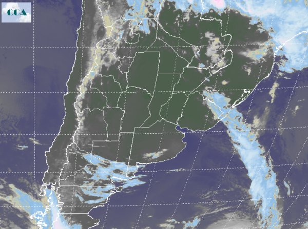 Ayer domingo se produjeron lluvias en distintas zonas de la región pampeana y el sistema frontal que las provocó se encuentra hoy, comenzando este lunes, en el NEA del país. Puede observarse en la imagen satelital que no hay importantes sistemas nubosos en la región pampeana. Durante el día de hoy el centro de un anticiclón post-frontal se ubicaría sobre el sur de Bs As y se movería hacia el este durante la noche y madrugada del martes. No se esperan precipitaciones y si un descenso en las temperaturas mínimas principalmente en La Pampa y la Provincia de Buenos Aires. La nubosidad disminuirá en el este de la región y se presentará muy escasa en el oeste a lo largo de toda la jornada.
