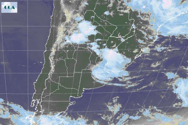 La imagen satelital se caracteriza por el desplazamiento hacia el este de un sistema de bajas presiones que ha producido algunas lluvias el día de ayer en el norte de Bs. As., Córdoba, Santa Fe y Entre Ríos, y durante el día de hoy y durante las primeras horas el aire caluroso y húmedo estará mas concentrado en el centro de la región pampeana y en el noroeste del país. Excepto en el centro de la región pampeana y en el noroeste del país (como viene sucediendo en las últimas semanas) no se esperan lluvias. Los registros térmicos tenderán a ser más elevados, tanto en las mínimas como en las máximas. Hasta el día viernes los sistemas frontales tenderán a moverse hacia el sur y no hacia el noreste del país, y se espera la entrada de un nuevo frente frío recién hacia el sábado.