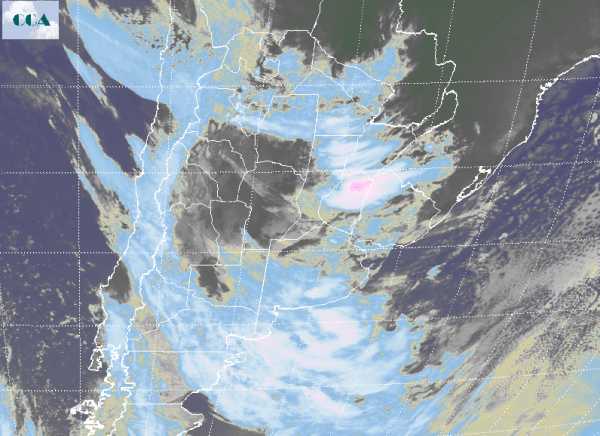 Las temperaturas mínimas de hoy se muestran por encimas de los valores de jornadas anteriores, producto del importante avance de aire templado y húmedo favorecido por la circulación del norte. La imagen satelital esta mostrando un importante grado de cobertura, distinguiéndose dos zonas con distinto nivel de actividad. La primera hacia el noreste de la región pampeana es generada por el desarrollo de un sistema de baja presión, que está concentrando las tormentas más importantes sobre el noreste de ER, extendiendo su influencia hacia las zonas agrícolas del Chaco. Se espera que la principal actividad y los montos de lluvias mas elevados asociados a este sistema de tiempo, se concentren sobre el norte de ER, sur de Corrientes, noreste de SF y sudoeste de Chaco. En esta amplia zona podrían darse acumulados superiores a los 40 mm. Este sistema tiende a moverse hacia Uruguay, por lo cual la eficiencia de las precipitaciones hacia el norte de BA se ve reducida y los montos de lluvia serían inferiores. Por otra parte se observa ingresando desde el sudoeste un sistema frontal que esta dejando algunas lluvias ligeras en el sudoeste, las cuales seguirán desplegándose en forma modesta a lo largo de la jornada de hoy sobre el centro sur de BA y LP. No se observan condiciones favorables para que se desarrollen tormentas de importancia sobre este sector y por lo tanto las lluvias serían del orden de 10 mm. El mal tiempo continúa hasta entrado el sábado con la conjunción de los dos sistemas de tiempo. Las condiciones mejoran finalizando el día con el ingreso de altas presiones desde el sudoeste y disminución de la nubosidad. Como es normal en esta época el anticiclón favorecerá la irrupción de aire frío que se notará en las marcas térmicas del domingo y lunes.