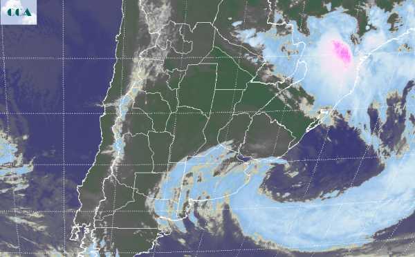 Durante toda la jornada de ayer, fuertes vientos del este azotaron toda la franja central del país. Por momentos se reportaron ráfagas de más de 100 km/h que en sectores puntuales del centro sur de SF y ER provocaron voladuras de techos. Si bien esta situación se ha ido moderando el sistema de baja presión que promovió estas condiciones meteorológicas aun afecta el continente, principalmente las provincias del sur de la región pampeana, observándose una importante mejora en las provincias del centro, donde ya no se reportan lluvias. La imagen satelital encuentra el centro de baja presión desplazado hacia el sudeste de las costas uruguayas y desde allí fuerza a la nubosidad a curvarse afectando las provincias de LP y BA, donde las lloviznas y lluvias ligeras han sido sostenidas, aunque no se aprecian celdas de tormenta no se espera que se desarrollen. El brazo de la derecha del sistema de baja presión define una zona frontal, que durante la noche de ayer dejó tormentas muy destacadas en la zona agrícola de Paraguay y que actualmente se han desplazado hacia el estado de San Pablo, postergando las zonas sojeras del Mato Grosso. Durante el resto de la jornada de hoy, se fortalecerán las buenas condiciones del tiempo en la franja central del país, con vientos dominantes del sector sur sudeste. Al mismo tiempo la nubosidad sobre el continente se irá retirando a medida que la baja presión evolucione en su proceso de oclusión hacia el interior del océano. En este proceso el centro se profundiza hasta que desaparece. Hasta entonces se espera mal tiempo sobre BA y vientos fuertes sobre sectores costeros y también sobre el sur de Uruguay. Desde mañana, ya toda la región pampeana gozará de buen tiempo con el afianzamiento de cielos despejados. Luego de un breve período donde se sentirá un cambio de masa de aire, se espera que nuevamente las condiciones se vuelvan inestables hacia la jornada del viernes.