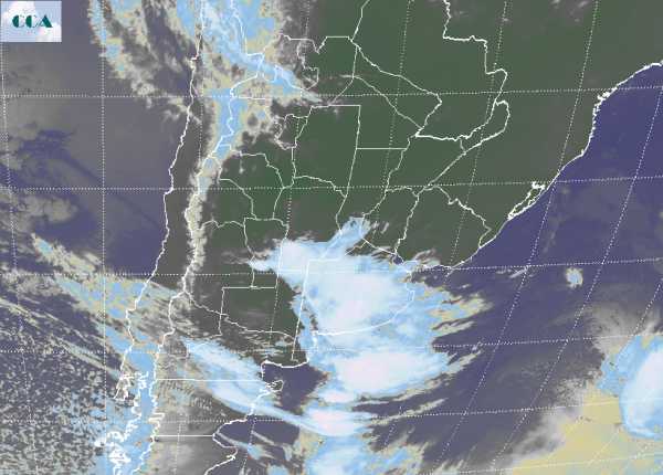 Durante la tarde de ayer se observaron tormentas de rápido desarrollo en la provincia de SL, zonas del este MZ y el sudoeste de CB. También sectores de LP y sudoeste de BA se vieron afectados por estas celdas de importante dinámica, a las cuales posiblemente deban asociárseles eventos con caída de granizo. Las altas temperaturas con fuerte incorporación de humedad en capas bajas de la atmósfera, generan un escenario propicio para el desarrollo de este tipo de celdas y no se descarta que las mismas se reproduzcan en la franja central en lo que resta de hoy y mañana. La imagen satelital presenta una vasta cobertura nubosa que se despliega desde el centro este de SL y cubre toda la provincia de BA. Esta actividad es previa al pasaje frontal, por lo cual el mejoramiento de las condiciones del tiempo en LP es temporario. Es posible que ya este lloviendo en el oeste de BA y en el sur de CB, Se espera que la actividad se acreciente durante el transcurso del día. La línea prefrontal se quedará estacionaria hasta la noche a la altura de BA. Se espera que para entonces comience a avanzar la masa de aire frío y seco desde el norte de la Patagonia. Esta masa de aire provocará mucha inestabilidad en su encuentro con la el aire que domina actualmente la región pampeana y consecuentemente los procesos de formación de lluvia se verán potenciados. Esto sucederá ya seguramente desde la tarde noche de hoy en el sur de BA, proyectándose al resto de la región pampeana durante mañana. Los máximos pluviales pueden darse en el sur de BA y en sectores de SF, ER y norte de BA. Las lluvias serán menos generosas en CB. Se espera un importante cambio de ambiente a partir del viernes, ya desde el jueves en el sur. El descenso térmico en este sector será significativo, no para dejar heladas, pero las mínimas pueden estar por debajo de los 5°C.