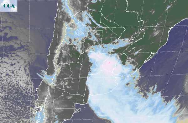 Durante gran parte de la noche de ayer y la madrugada de hoy las lluvias se han venido desplegando sobre territorio bonaerense y expandiéndose hacia las provincias de SF y ER. Como mostraban los pronósticos, la franja oeste de la región pampeana viene quedando postergada y si bien durante el transcurso de la jornada de hoy, las coberturas de la franja central podrían contener a la provincia de CB, las lluvias serían más bien marginales respecto de lo que se viene observando en el este. Durante gran parte de la madrugada ha llovido en BA sin que se registren tormentas severas. Es posible que muchas localidades se hayan sumado registros de importancia, por encima de los 30 mm, pero esto ha sido por continuidad de las precipitaciones más que por su intensidad. La foto satelital permite apreciar la vasta cobertura nubosa que toma el este de la región pampeana y parte del oeste uruguayo. Actualmente las nubes más desarrolladas se posicionan en el centro sudoeste entrerriano y algunas celdas de tormenta se han generado en el centro de SF. Sin embargo sobre el sur sudoeste de esta provincia la nubosidad pierde desarrollo. Sobre el Pacífico sur se observa la típica nubosidad que marca la presencia de aire frío a punto de cruzar a la Patagonia. Este sistema de tiempo seguirá afectando gran parte de la zona durante el resto del día. Es baja la probabilidad de que las precipitaciones se extiendan hacia el oeste y tomen el centro oeste de CB y SL. La trayectoria de esta perturbación indica un desplazamiento hacia el este noreste, fortaleciéndose al llegar al norte del país donde deberían generalizarse las tormentas. El tiempo mejora progresivamente desde el sur con en el transcurso de la tarde de hoy. Ya no se esperan tormentas sobre la provincia de BA. Mañana cambia el ambiente y los amaneceres del fin de semana serán frescos, fríos en el sur de la región.