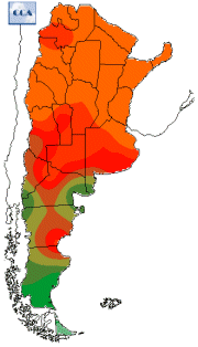 Mapa de temperaturas mínimas del día. (Hasta hoy a las 9:00AM)