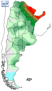 Mapa de temperaturas mínimas del día. (Hasta hoy a las 9:00AM)