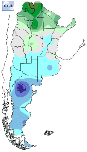 Mapa de temperaturas mínimas del día. (Hasta hoy a las 9:00AM)