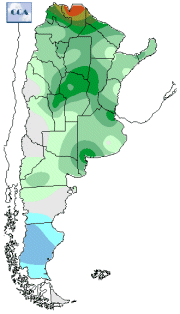 Mapa de temperaturas mínimas del día. (Hasta hoy a las 9:00AM)