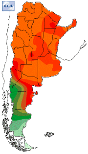Mapa de temperaturas mínimas del día. (Hasta hoy a las 9:00AM)