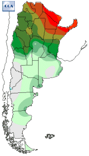 Mapa de temperaturas mínimas del día. (Hasta hoy a las 9:00AM)