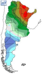 Mapa de temperaturas mínimas del día.(Hasta hoy a las 9:00AM)Se actualiza a las 11:00hs.