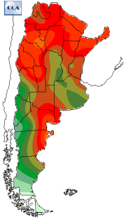 Mapa de temperaturas mínimas del día.(Hasta hoy a las 9:00AM)Se actualiza a las 11:00hs.