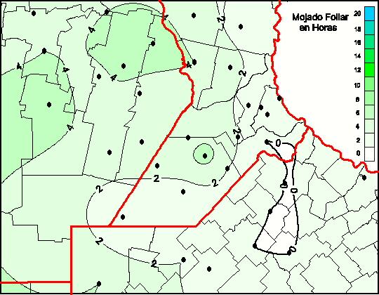 Mapa de humedad de hoja de las las últimas 48 horas.(Desde las 8:00AM hasta las 8:00AM). Se actualiza a las 10:00hs.