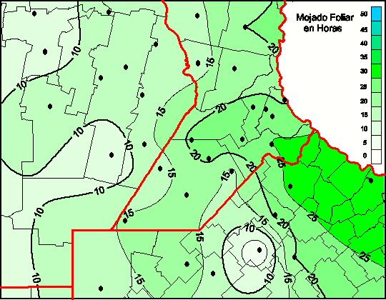 Mapa de humedad de hoja de las las últimas 48 horas.(Desde las 8:00AM hasta las 8:00AM). Se actualiza a las 10:00hs.