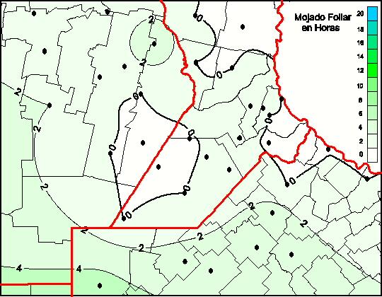 Mapa de humedad de hoja de las las últimas 120 horas.