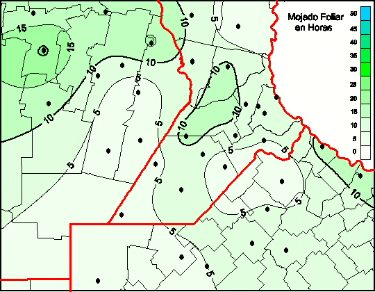 Mapa de humedad de hoja de las las últimas 48 horas.(Desde las 8:00AM hasta las 8:00AM). Se actualiza a las 10:00hs.