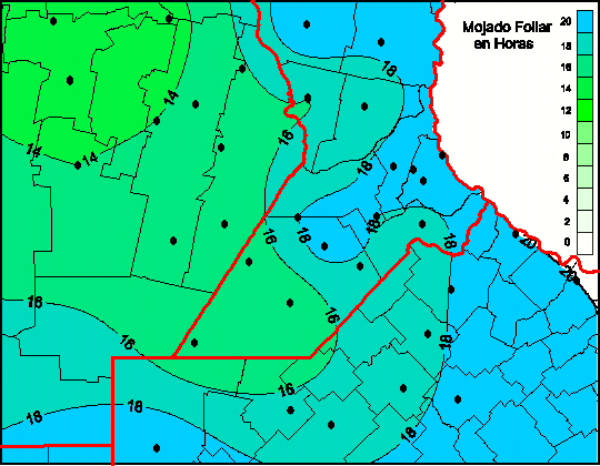 Mapa de humedad de hoja de las las últimas 48 horas.(Desde las 8:00AM hasta las 8:00AM). Se actualiza a las 10:00hs.