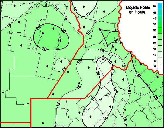 Mapa de humedad de hoja de las las últimas 48 horas.(Desde las 8:00AM hasta las 8:00AM). Se actualiza a las 10:00hs.
