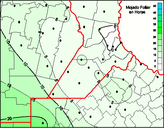 Mapa de humedad de hoja de las las últimas 48 horas.(Desde las 8:00AM hasta las 8:00AM). Se actualiza a las 10:00hs.