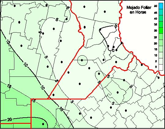 Mapa de humedad de hoja de las las últimas 48 horas.