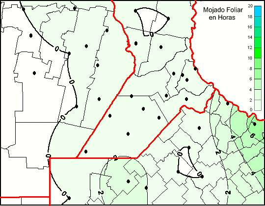 Mapa de humedad de hoja de las las últimas 48 horas.(Desde las 8:00AM hasta las 8:00AM). Se actualiza a las 10:00hs.