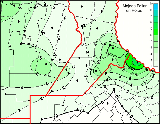 Mapa de humedad de hoja de las las últimas 120 horas.