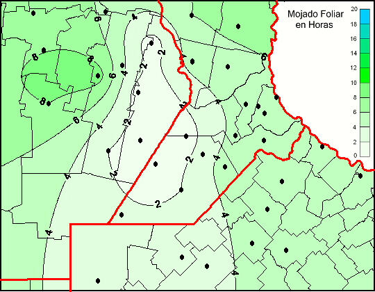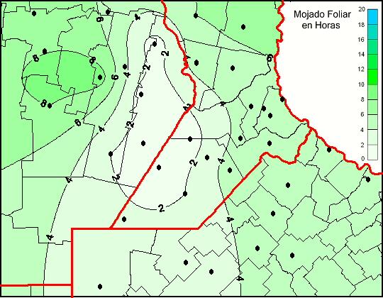 Mapa de humedad de hoja de las las últimas 48 horas.(Desde las 8:00AM hasta las 8:00AM). Se actualiza a las 10:00hs.