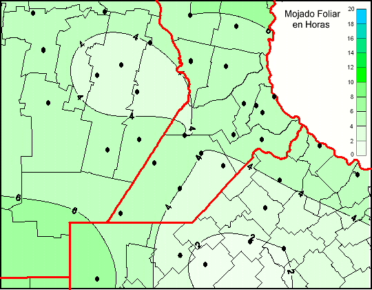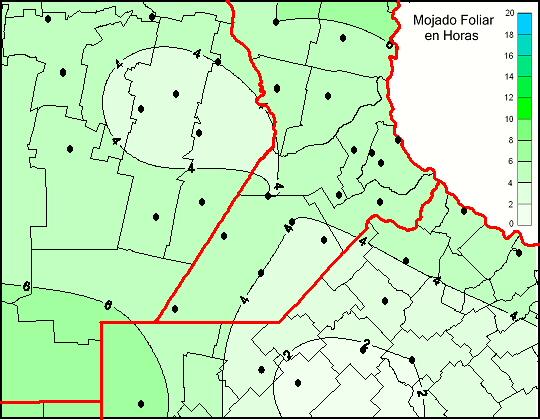 Mapa de humedad de hoja de las las últimas 120 horas.